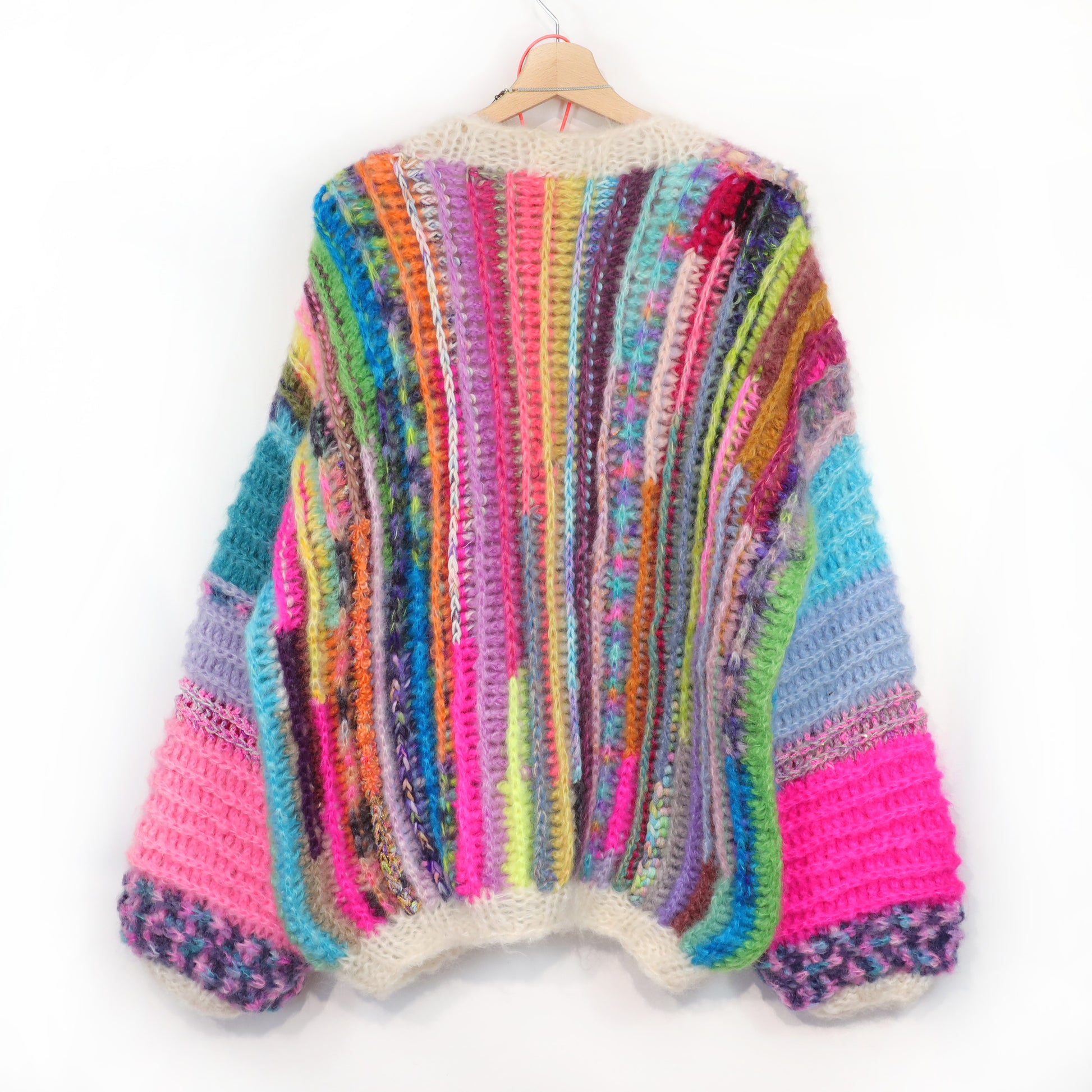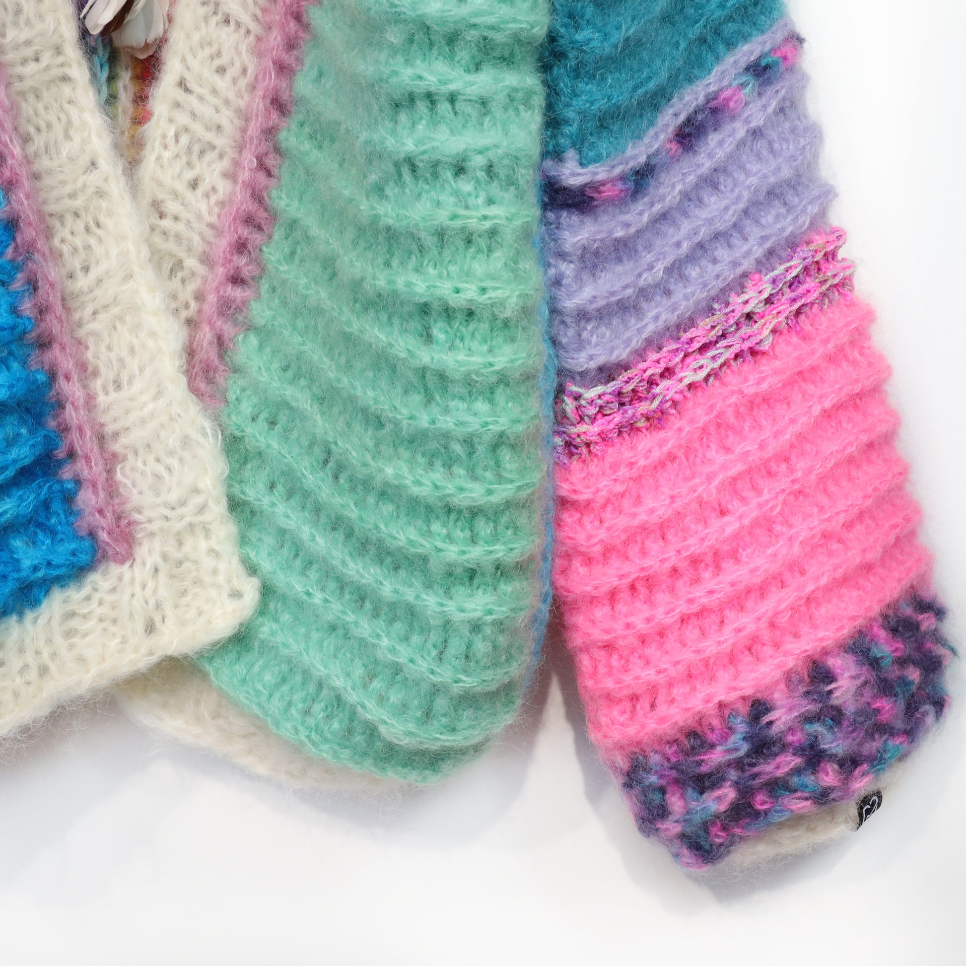 Each piece is a unique example of what can be made with our DIY kits and high-quality mohair yarns. These finished pieces are carefully made in very limited numbers by hand, purely to inspire our customers and to showcase our yarn collections and patterns.