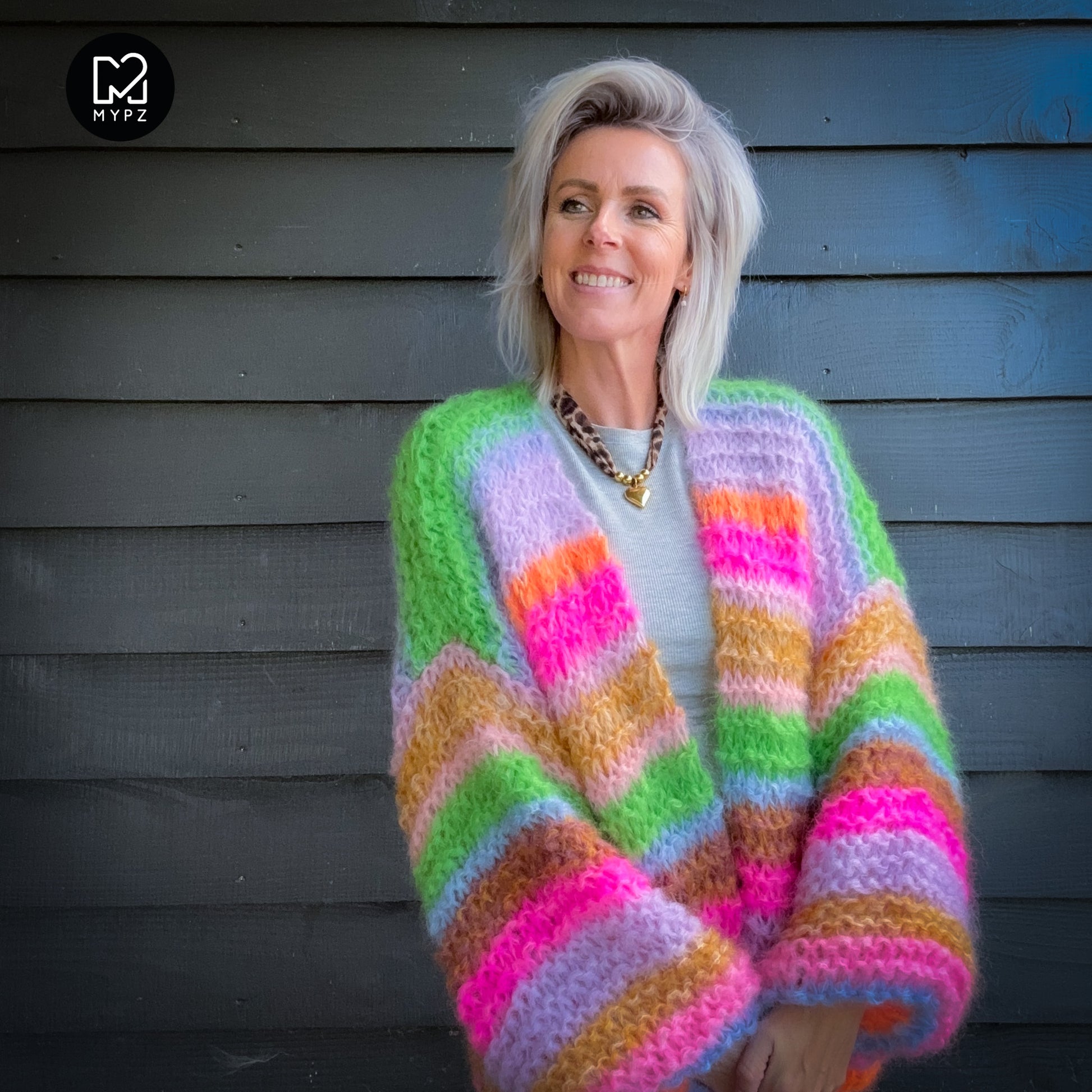 Knitting Kit – MYPZ Chunky Mohair Cardigan Rainbow Sorbet No.15 (ENG-NL-DE)