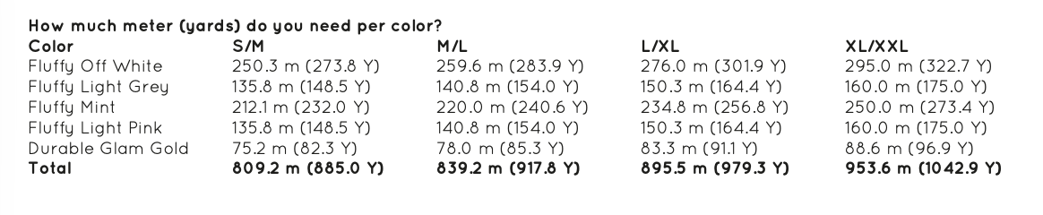 How much yarn do you need, based on the colors in the picture for size S/M, M/L (L/XL & XL/XXL):