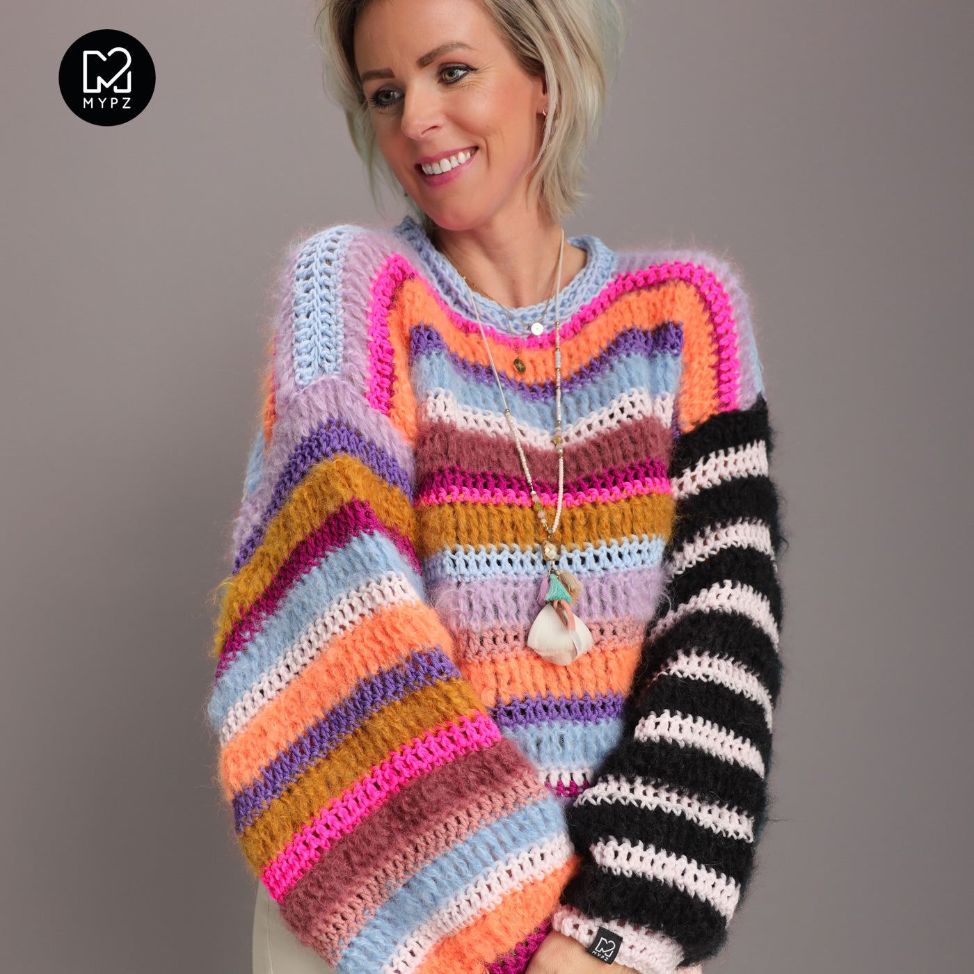 This is a handmade knit made by MYPZ in The Netherlands. Each cardigan or sweater is a unique piece and we take a lot of time and care to create these beautiful products. This sweater has a oversized fit.