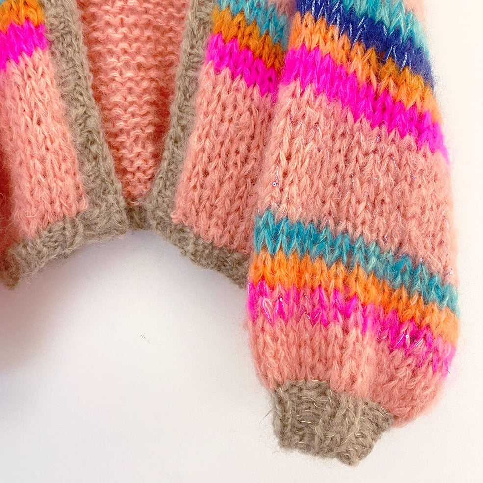 This cardigan is a pleasure to wear. You can vary yourself in use of color. Please note that this pattern is based on a chunky mohair DK. If you use a different type of yarn, this can (of course) have an effect on the pattern. The entire pattern is supported with a line drawing which shows the number of stitches. Refer to the line drawing at all steps.